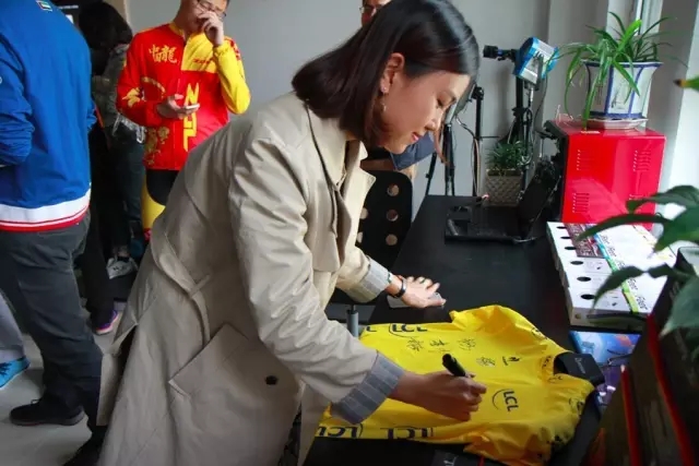 受邀嘉宾在环法百年纪念黄衫签名留念